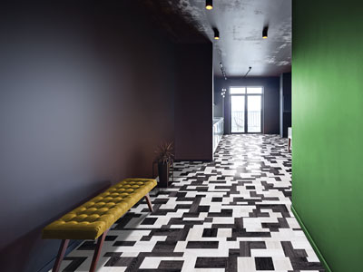 經典的黑白馬賽克雙色混搭,打造極具沖擊力的視覺效果。