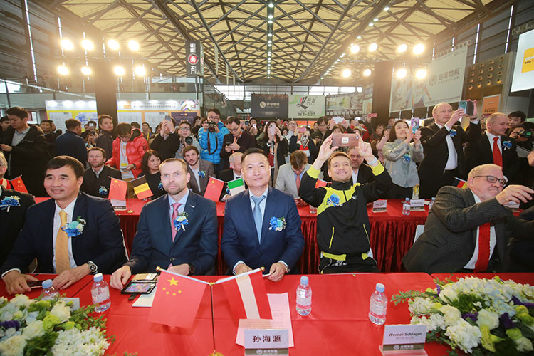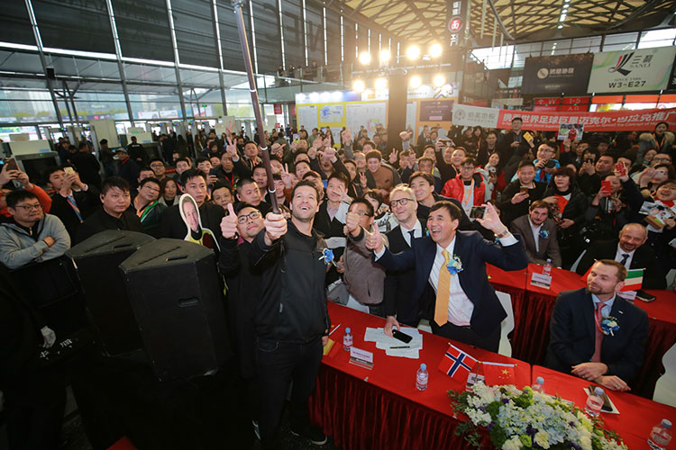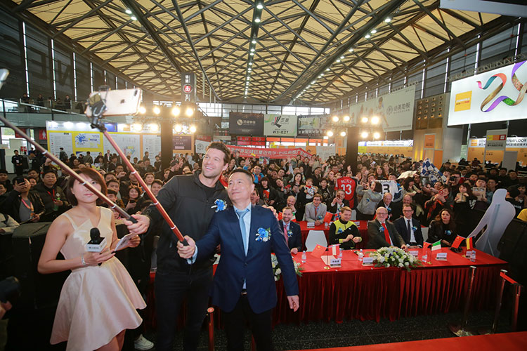 聽聞巨星降臨,從上午9點(diǎn)開始,必美地板展廳就不斷涌入大量觀眾,大家一邊欣賞廳內(nèi)展出的精品地板,一邊翹首等待兩位球星的到來。10點(diǎn)半,巴拉克和施拉格終于現(xiàn)身必美地板,立即引起館內(nèi)轟動(dòng),人潮涌動(dòng)中,全場舉起了一片手機(jī)之海,像是在掃福,幸好我們的球星都擁有傲人的身高,足以讓大家望見真容。上午11點(diǎn),必美地板在南大廳舉行了“世界巨星盛會(huì) 傳遞家居環(huán)保”的新聞發(fā)布會(huì),必美國際集團(tuán)總裁孫海源先生開場致詞,對各位嘉賓的到來表示熱烈的歡迎,順祝上海地材展20周年節(jié)日快樂。上海萬耀企龍展覽的總裁仲剛先生也對必美的活動(dòng)表示出十分的期待。萬耀企龍和必美地板雙方建立了長期的戰(zhàn)略合作關(guān)系,多年來發(fā)揮各自優(yōu)勢,整合資源,實(shí)現(xiàn)了共同發(fā)展,未來雙方也將繼續(xù)同舟共濟(jì),為中國的環(huán)保家居事業(yè)注入更多激情和動(dòng)力。
