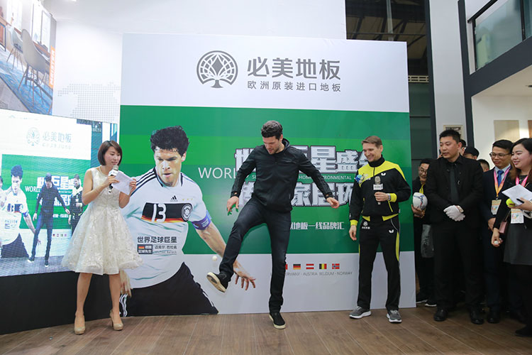2018年3月20日,第20屆中國國際地面材料及鋪裝技術(shù)展覽會(huì)在寒雨交加中如約開展,一千多家品牌匯聚一方爭高下。作為陪伴上海地材展近10年的老牌參展商,必美地板今年盛邀兩大國際巨星:原德國鐵血隊(duì)長邁克爾.巴拉克和乒乓球世界冠軍維爾納.施拉格激情助陣,更有旗下品牌的歐洲廠商代表前來赴會(huì),超豪華的陣容配置讓必美地板瞬間成為本屆上海地材展的奪目焦點(diǎn),吸引了央視CCTV、中國新聞社、網(wǎng)易、鳳凰、搜狐、房天下等多家主流媒體的強(qiáng)勢聚焦,全方位多渠道地報(bào)道了此次盛會(huì)。