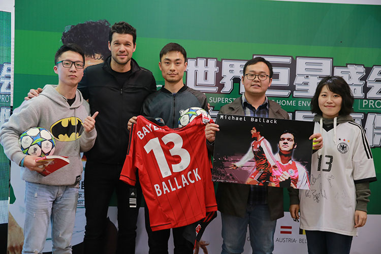 最令球迷開心的當(dāng)數(shù)主辦方設(shè)置的一系列游戲了,無論是和施拉格PK的顛球還是巴拉克進(jìn)球模仿秀都玩得有聲有色,巴拉克甚至還現(xiàn)場欽點(diǎn)了幾位幸運(yùn)球迷進(jìn)行近距離互動(dòng),讓大家大呼過癮。最令人羨慕的就是之前參加必美地板網(wǎng)上互動(dòng)脫穎而出的幾個(gè)球迷了,他們可是到現(xiàn)場來領(lǐng)獎(jiǎng)的哦,巴拉克親自頒發(fā)自己簽名的足球和球衣,還得到了合影留念的機(jī)會(huì),簡直是人品大爆發(fā)!這場巨星盛會(huì)中,網(wǎng)易和中新社等媒體進(jìn)行了全程網(wǎng)絡(luò)直播,吸引了網(wǎng)上大批粉絲的圍觀和支持。很多球迷為了參加這次難得的活動(dòng),專程從各地飛過來,活動(dòng)一結(jié)束就要趕飛機(jī)回去,這份真情令人感動(dòng)。