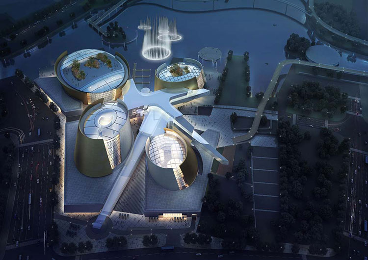 應(yīng)客戶的要求,Studio Marco Piva和Arup根據(jù)動態(tài)形式的想法開發(fā)了一種設(shè)計(jì)概念,該概念能夠定義功能性的隔行空間,但也可以進(jìn)行調(diào)制,與對自然光或人造光做出反應(yīng)的環(huán)境進(jìn)行強(qiáng)烈互動,產(chǎn)生視覺驚喜和反射效果。該文化中心的“中樞神經(jīng)系統(tǒng)”是橫跨文化廣場的“流星”鉸接式玻璃體,這個(gè)巨大的放射狀星形連接體將四座建筑連接起來,和周邊環(huán)境和城市文化很是融洽,四座建筑的一層和內(nèi)部的夾層處是相互連接的。