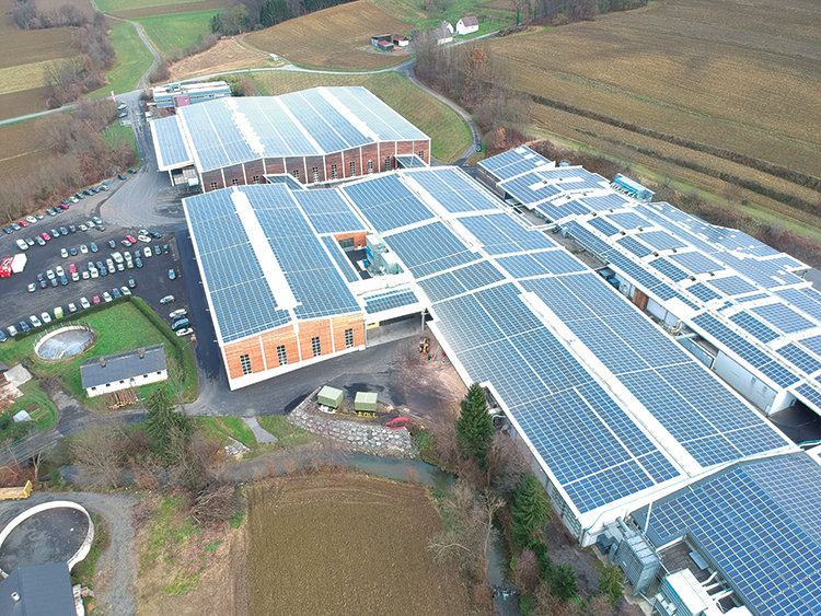 從2018年11月開始,史迪萊克的光伏系統(tǒng)投入運(yùn)營,屋頂面積約30000㎡,相當(dāng)5個足球場的面積,約有17000塊太陽能電池板,是目前奧地利最大的光伏屋頂系統(tǒng)。該工廠的輸出功率為5000 KWp,該容量可為大約1200個普通家庭供電。其中一部分電力用于生產(chǎn)實(shí)木復(fù)合地板,其余部分則導(dǎo)入公共電網(wǎng)。借助新光伏系統(tǒng)能夠減少約400萬公斤的二氧化碳排放。此外,史迪萊克將建立充電站,希望打造一個“全電動”的運(yùn)輸體系。