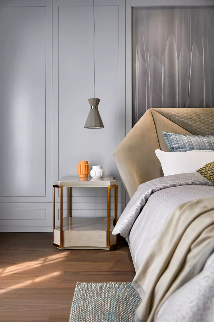 臥區(qū)去除了冗余的裝飾,以簡(jiǎn)約為美,僅點(diǎn)綴幾款精致的燈飾,卻給人一種無(wú)與倫比的視覺(jué)享受。量身定制的床品舒適雅致,衣帽間空間充沛,木色怡人,溫和而寧?kù)o的空間讓這里流淌靜謐安逸的氛圍。夢(mèng)香,或許便是臥室設(shè)計(jì)的極致,而史迪萊克單拼銀胡桃為這種極致提供了最佳基調(diào)。