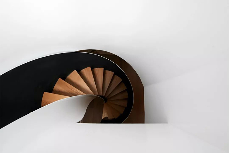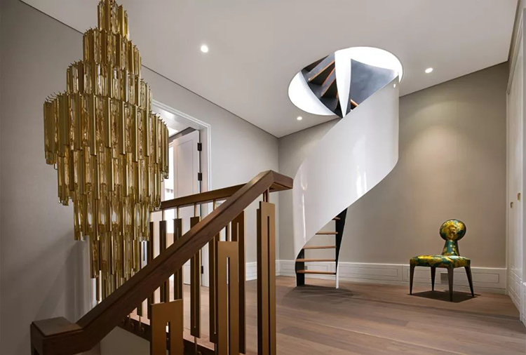 古波斯作家薩迪于《薔薇園》中有言,“凡是心中所喜歡的,看來(lái)總是最美”。女主人喜歡旋轉(zhuǎn)樓梯,于是設(shè)計(jì)師在主臥門口設(shè)計(jì)了一部白色的旋轉(zhuǎn)樓梯,娉婷而上,風(fēng)姿綽約,這既通往四樓陽(yáng)光房的功能設(shè)計(jì),也是一個(gè)唯美的藝術(shù)裝置。而在”她“身邊,一張綠綢繡花面的單椅默默陪伴,無(wú)聲述說(shuō)著家的真意:陪伴,就是最長(zhǎng)情的告白。