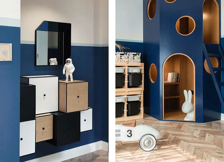設計思路:通過“形”的組織 來化解雞肋空間,嘗試讓整個房子變得有趣;通過“玩”我們把三層空間串聯到一起,希望大人和孩子都能在這里自由玩耍,學習和成長。等孩子們成了大人,大人漸漸衰老,偶爾閑坐聊天時,能回憶里起在這個家幸福的點滴,也許這就是美好生活的意義。