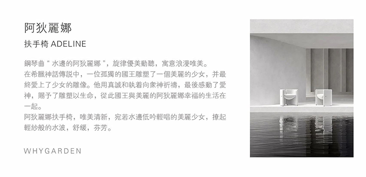 GARDEN--意為美好的大自然,清風(fēng),清泉,鮮活、美麗的生命都來自大自然,而孟也想將它們重新納入這個(gè)世外花園,帶給每一個(gè)有溫度的家以自然的清新和美好。