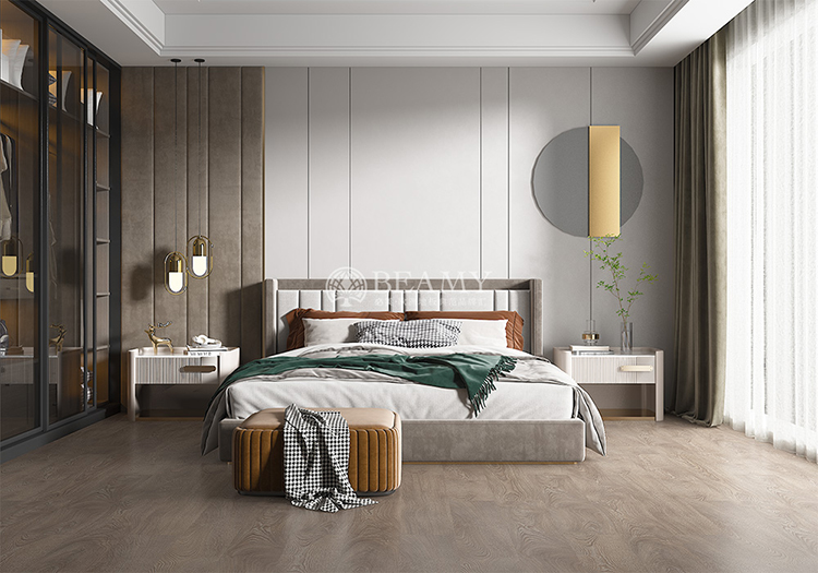 必美地板智慧門店系統設置了輕奢風、現代簡約風、新中式等時下最流行的6大家居風格,滿足消費者的個性化家裝需求。每種風格匹配客廳、臥室、廚房等6大家居功能區,全方位覆蓋生活空間。點擊產品中心,可以自由替換每個功能區的地板產品,一鍵查看產品詳情和鋪裝效果,同時可以快速更換風格,選擇橫鋪豎鋪等鋪裝方式,360°全景復刻,自由調節查看的角度和細節,到你暢游未來之家,為完美家裝帶來無限的想象空間。