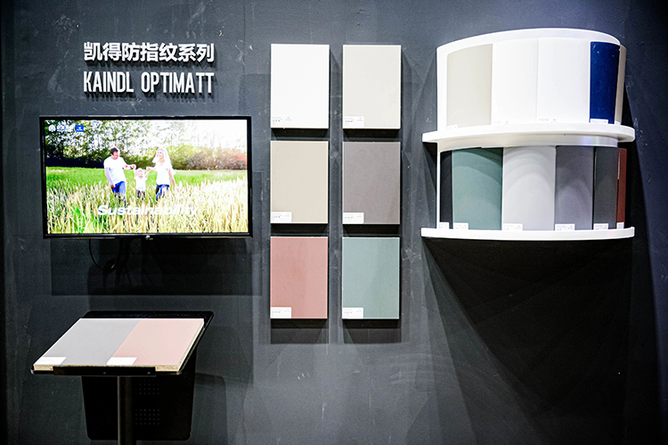 以及2022米蘭展趨勢新品——凱得Optimatt飾面板,兼顧時尚的外觀和完美的防指紋表面處理工藝,凱得的臺面飾板抗沖擊、耐磨損、耐褪色的特性也十分突出,讓前來觀展的觀眾嘆為觀止。