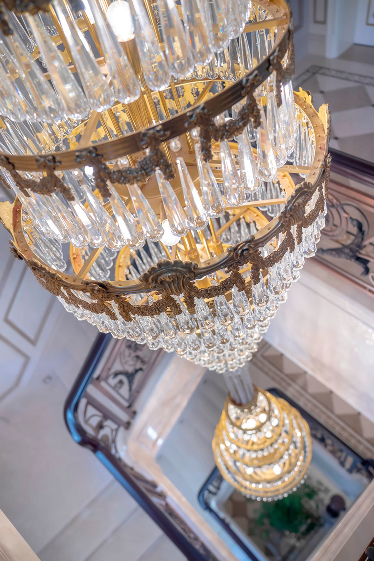 這座如宮殿般奢華的別墅位于蘇州張家港,耗資約5千萬,由當地知名設計師范鵬飛設計完成。高聳的挑空客廳、精致的歐式雕花墻飾、大氣的大理石墻面、奢華的懸掛吊燈,豪華程度簡直令人嘆為觀止。