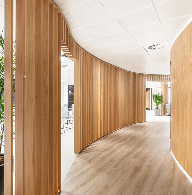 “特別是在展廳入口處迎接他們的Moods系列柳條圖案的LVT地板讓團隊大吃一驚,他們不敢相信LVT地板不是真實的木材。了解到產品有成本、耐用和易維護的優勢,以及創造真正獨特設計的能力,我們就知道Moods系列將會給整個辦公室賦予溫暖、溫馨的感覺。”