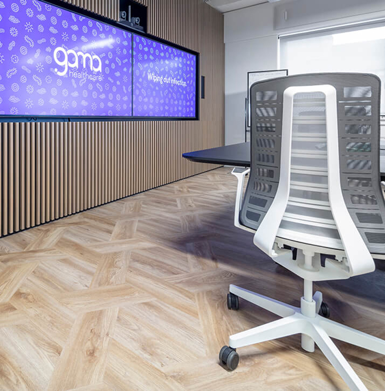 莫迪里奧Moods系列及直板系列的LVT地板為被評級為SKA Gold的領先的無菌產品制造商-伽瑪衛生消毒用品有限公司的辦公室增添了溫馨的氛圍。