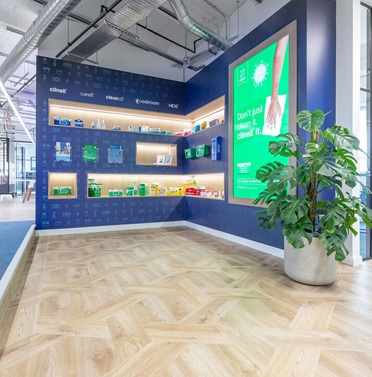 英國伽瑪衛生消毒用品有限公司Gama Healthcare在其辦公室的改造項目中使用了莫迪里奧的LVT地板,改造完成后,變獲得了SKA Gold評級。