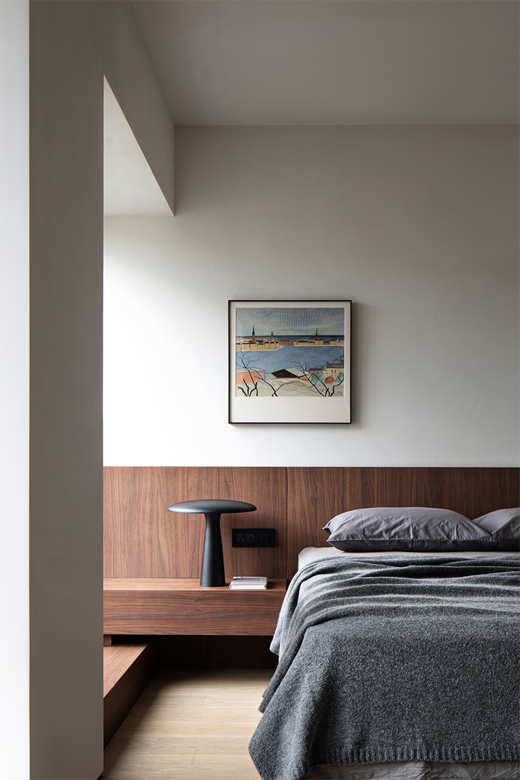 臥室空間以簡潔、雅致為基調, 營造溫暖親近,愜意舒適的空間,給人一種靜謐的安心,舒緩疲憊整日的身心。