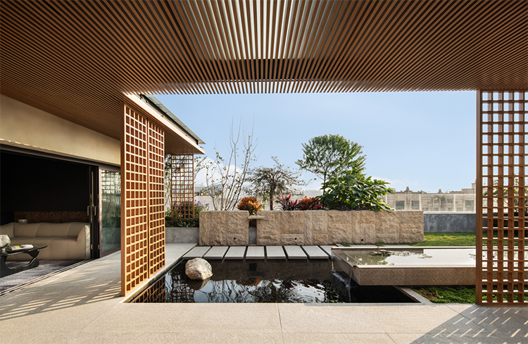 蓉城,四季流轉,歲月留痕。設計師欲將都市與山林的四季風景融匯成一支交響曲,吟唱于這座位于成都南區的頂躍居所。