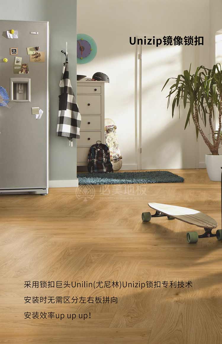 采用鎖扣巨頭Unilin(尤尼林)Unizip鎖扣專利技術(shù)