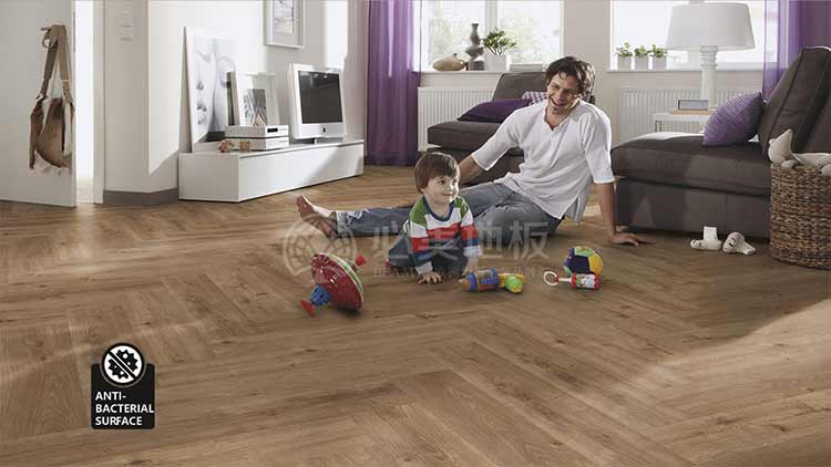 地板自帶抗菌護(hù)盾,抗菌率高達(dá)≥99.9%,能夠抵御金黃葡萄球菌、大腸桿菌,對(duì)有小朋友、老人和愛寵的家庭十分友好,輕松實(shí)現(xiàn)健康家居生活。