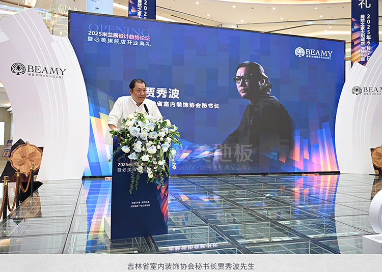 在熱烈的掌聲中,居然智家太陽城店營銷管理部負責(zé)人赫明剛先生上臺并強調(diào):必美地板是我們重要的合作伙伴,代理的都是歐洲現(xiàn)在最健康耐用的優(yōu)質(zhì)地板,我們這個展廳也非常美輪美奐,也希望更多消費者來我們必美地板旗艦店進行體驗參觀,因為必美地板能夠真正帶給我們一種不一樣的對地板的認知和體驗,同時它也會引領(lǐng)和傳遞給消費者一個新的地板消費概念。