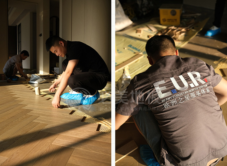 歐洲進口地板的安裝工藝要求,是高于國內標準的,必美的施工團隊是經過嚴格的專業培訓的專業施工隊伍,以過硬的技術、貼心的服務贏得了無數業主的青睞。