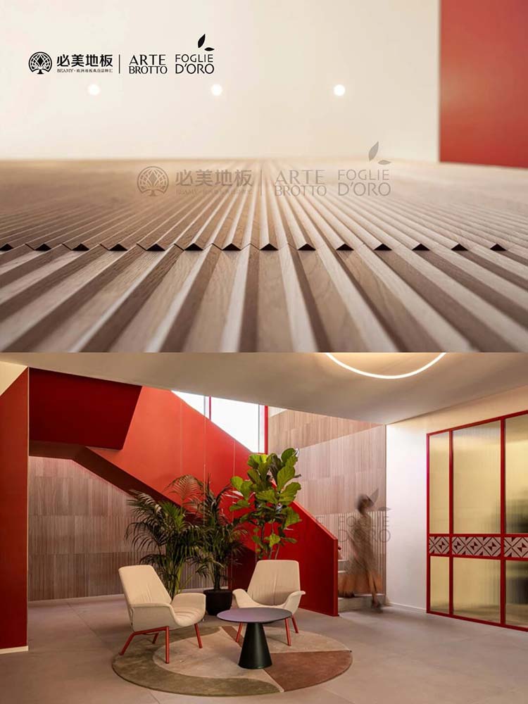 因此,一家領先的意大利制藥公司選擇了必美阿特·布魯托的Relevo系列的模塊化V-Code 3D橡木墻板來裝飾其總部的部分區域。