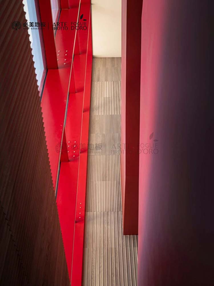 Rovere Natura自然淺色飾面與幾何模塊化設計,與高科技環境完美融合,在木材的溫潤質感和變化有致的銑削深度中,營造出極具張力卻又整體平衡的視覺構圖。