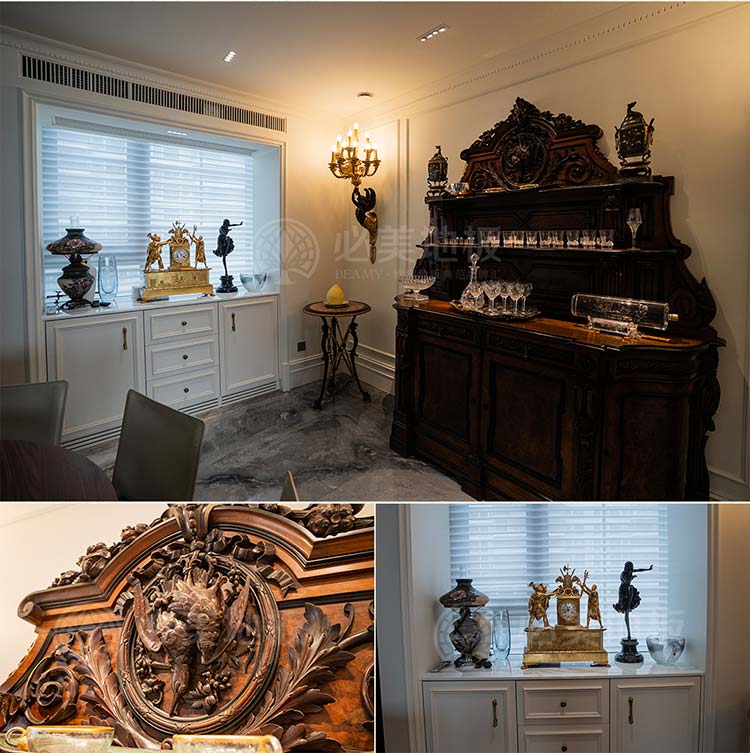 無論是家具上每一道手工雕花的曲線,還是空間中點綴的藏品級古董擺件,它們并非為了炫耀,而是作為歷史的見證者與藝術的載體,共同構筑了一個充滿文藝古典氣息的場域。