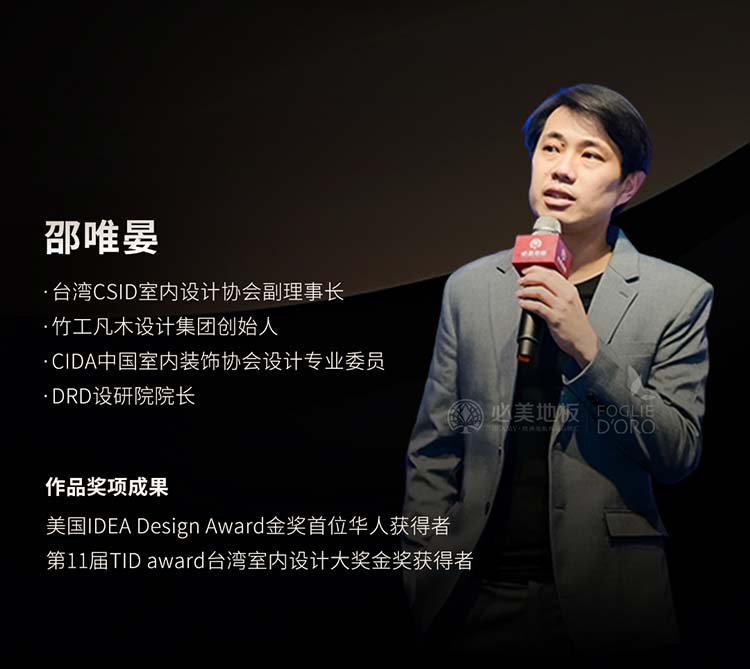 邵唯晏,臺(tái)灣CSID室內(nèi)設(shè)計(jì)協(xié)會(huì)副理事長(zhǎng),竹工凡木設(shè)計(jì)集團(tuán)創(chuàng)始人、CIDA中國(guó)室內(nèi)裝飾協(xié)會(huì)設(shè)計(jì)專業(yè)委員,DRD設(shè)研院院長(zhǎng),美國(guó)IDEA Design Award金獎(jiǎng)首位華人獲得者,第11屆TID award臺(tái)灣室內(nèi)設(shè)計(jì)大獎(jiǎng)金獎(jiǎng)獲得者,被譽(yù)為“鬼才設(shè)計(jì)師”、“亞洲設(shè)計(jì)新勢(shì)力”。