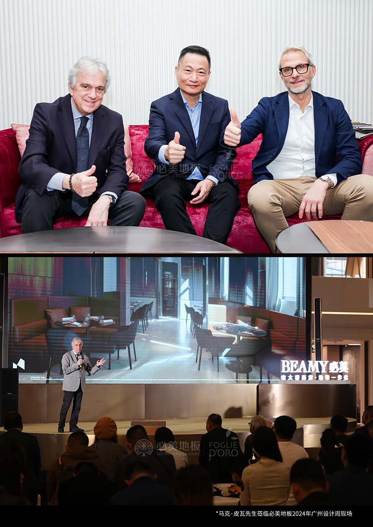 唐忠漢先生蒞臨必美地板2024廣州設(shè)計(jì)周現(xiàn)場(chǎng),共鑒意大利頂奢木作!
