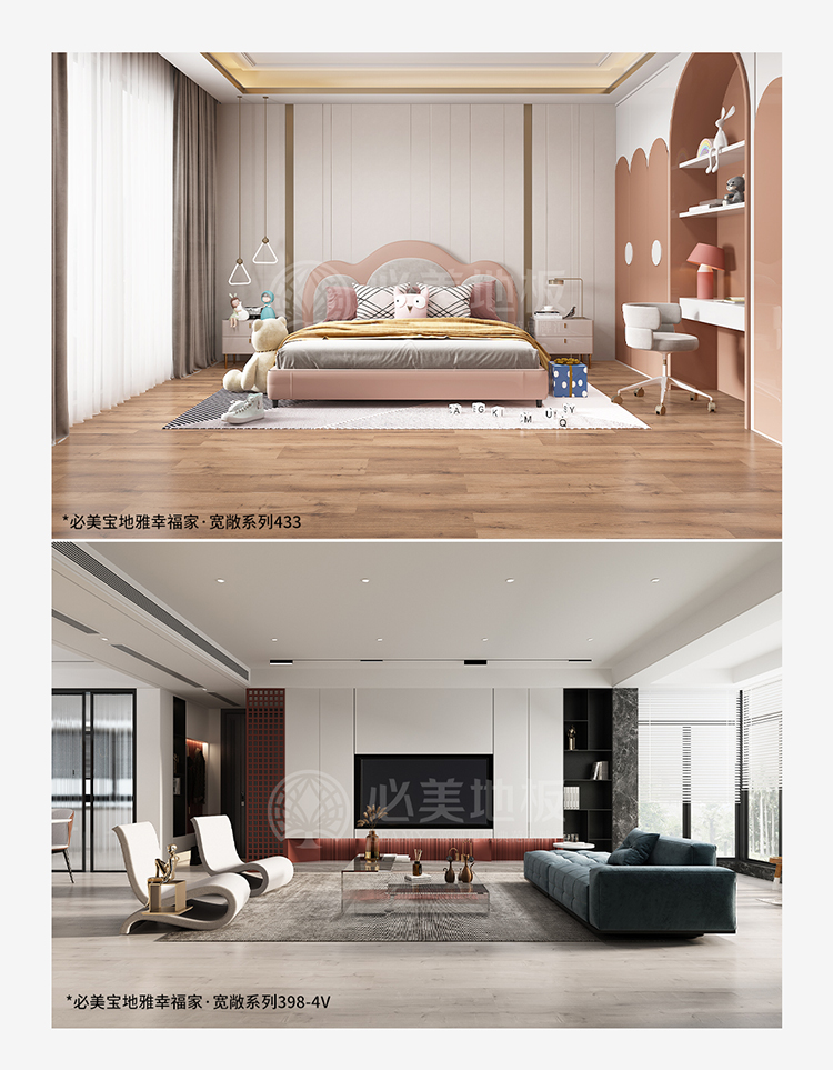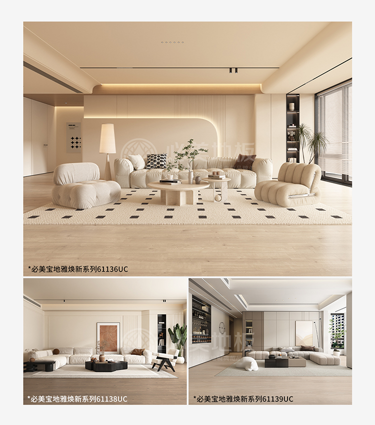 除了橡木,栗木和金合歡等其他木材因其獨特的特性和溫暖而受到關(guān)注。啞光和超啞光飾面增強(qiáng)了這些設(shè)計的真實性,提供了一種逼真的木質(zhì)感覺,模糊了強(qiáng)化木地板和實木地板之間的界限。與此同時,大理石和石材效果因其紋理外觀和精致的精致而越來越受歡迎,這得益于數(shù)字印刷技術(shù)的進(jìn)步。這些趨勢共同塑造了簡約、輕盈的北歐風(fēng)格,塑造了現(xiàn)代室內(nèi)設(shè)計。