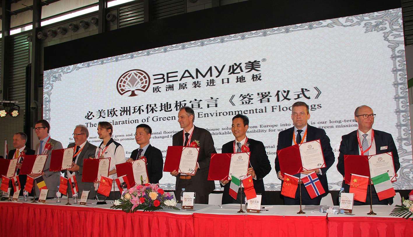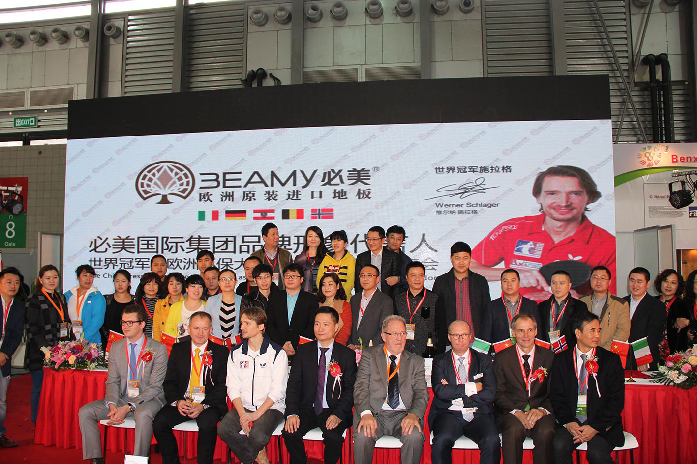 必美國際集團形象大使、乒乓球世界冠軍——Werner Schlager(維爾納.施拉格)先生、中國林產工業協會重要領導、必美國際高層、歐洲木地板工業協會(FEP)終身常任理事、歐洲木地板工業協會前任主席、 史迪萊克木業集團董事長——Karl Scheucher、必美國際集團旗下的德國、意大利、奧地利、挪威、比利時歐洲工廠代表親臨現場,發表精彩講話,共同見證歷史性的時刻。